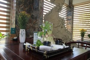 Với lối kiến trúc vừa sang trọng vừa đậm chất truyền thống, điểm xuyến sự gần gũi với thiên nhiên , Green Spa – Wellness không chỉ khiến khách hàng ấn tượng mà còn tạo cảm giác rất thư thái và dễ chịu. Ngoài ra, Green Spa – Wellness còn sử dụng các tinh dầu tự nhiên (nổi trội nhất là mùi ngọc lan tây), có sẵn trà thảo mộc và khăn lạnh cho khách hàng và miễn phí đồ uống và thức ăn nhẹ sau liệu trình.