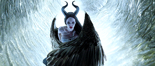 Thật sự tạo hình của Maleficent rất cuốn. Từ đôi mắt sắc bén, gò má nhô cao, là môi đỏ, cặp sừng, đôi cánh, trang phục. Tất cả tạo nên một Angelina Jolie quá đỗi ấn tượng. Có lẽ cảnh gây thương nhớ nhất với nhiều khán giả là khi Maleficent bị thương và tỉnh dậy trong một tổ chim. Hình ảnh một Maleficent có mái tóc suôn dài, làn da trắng, không gian xung quanh rộng lớn mang một màu trắng đen huyền bí. Đó như một bức tranh được vẽ nên mà tâm điểm là chị đẹp Maleficent của chúng ta.